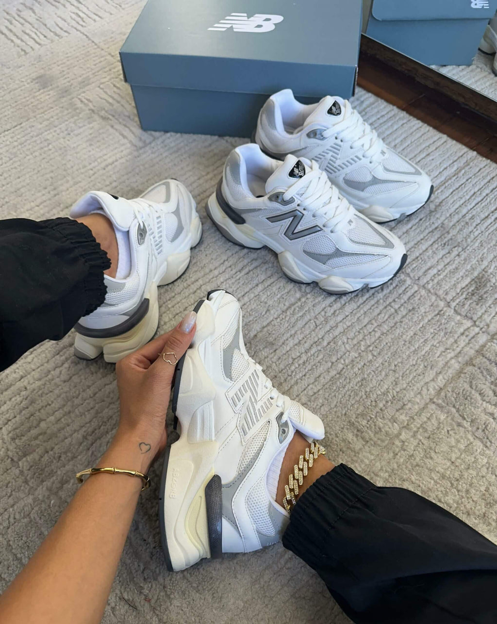 O New Balance 9060 Branco e Cinza une o design futurista característico da linha 9060 com uma paleta clássica e atemporal. Inspirado na estética esportiva dos anos 2000, o modelo apresenta uma silhueta robusta e moderna, ideal para quem busca estilo marcante sem abrir mão da versatilidade.